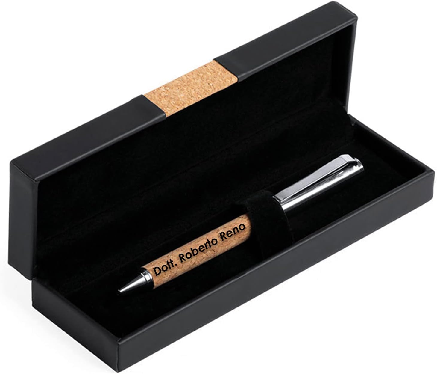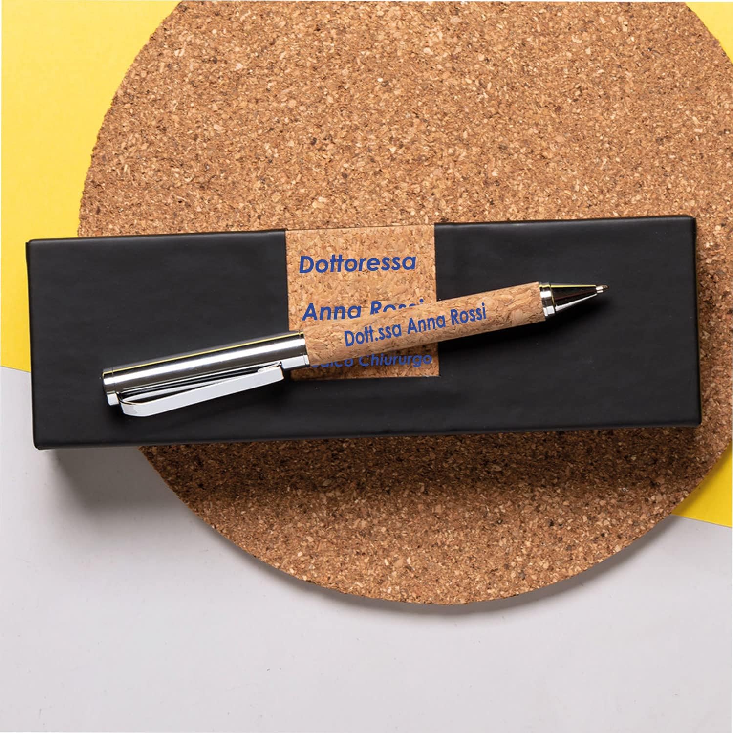 GFD – Penna Personalizzabile Blu – Include Cofanetto in Similpelle con Dettagli in Sughero – Refill Blu – Perfetta come idea regalo per laurea e altro – Made in Italy